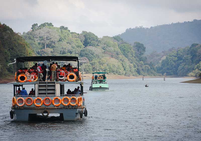Hoy está lleno de aventuras, ya que disfrutaremos de múltiples actividades en la jungla. Iremos a hacer bambú rafting, una actividad completamente respetuosa con el medio ambiente. Desde el amanecer hasta el anochecer haremos actividades de senderismo y rafting en una canoa de bambú a través de algunos de los tramos de bosque más frondosos en la reserva del tigre de Periyar. Pequeños aperitivos y comida empaquetada será servida durante el camino. Tendrás la oportunidad de ver la rica vida salvaje de este lugar. Noche en Periyar.