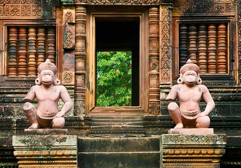 Tenemos otro día para explorar esta ciudad, así que comenzaremos visitando el Banteay Srei, un templo del siglo X dedicado a Lord Shiva y construido con arenisca roja, dando a las esculturas aquí una apariencia prístina. Estas delicadas obras siguen siendo una joya del arte Jemer. Más tarde realizaremos una visita a una tradicional casa de madera de Camboya, seguida de una visita al antiguo templo de Ta Prohm, donde los árboles crecen fuera de las ruinas y la naturaleza se funde con la historia. Luego visitaremos los Artesanos de Angkor, donde se puede obtener una idea de las inmensas habilidades y mano de obra de los artesanos locales, y también comprar recuerdos. Noche en Siem Reap.