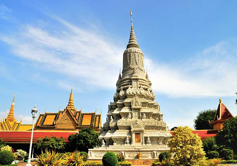 Es hora de visitar la ciudad. Después de un suntuoso desayuno visitaremos el Palacio Real, que es la residencia oficial de la familia real de Camboya, y también la Pagoda de Plata, conocida como el Templo del Buda Esmeralda. Luego iremos al Museo Nacional, antes de pasar el museo de la prisión Tuol Sleng y el campo de exterminio Choeung Ek, uno de los campos de asesinatos más notorios del régimen de los Jemeres Rojos. Ambos lugares son un angustioso recordatorio del reciente sufrimiento de la gente de Camboya. Disponen de recorridos informativos en audio que te permitirán descubrir la conmovedora historia. Noche en Phnom Penh.
