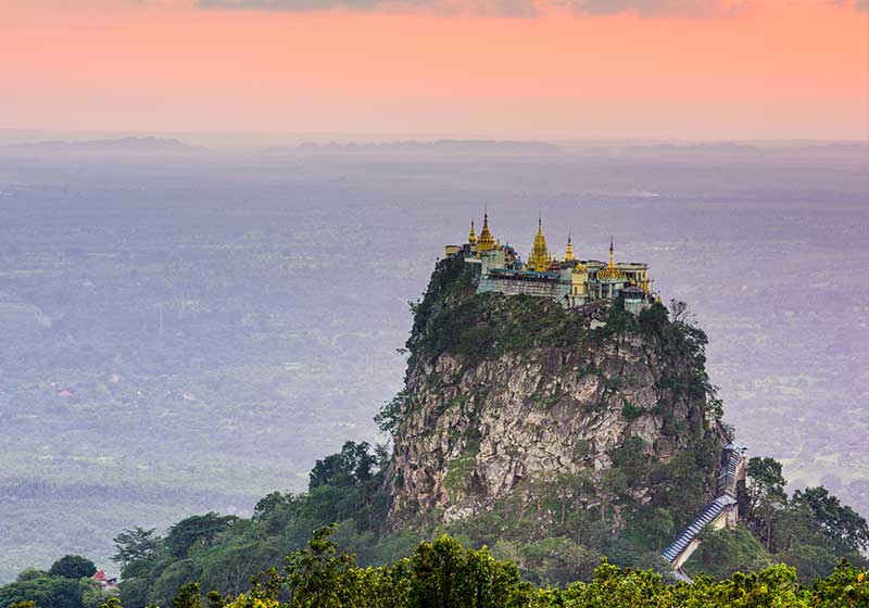 Después de un delicioso desayuno, iremos en coche al monte Popa (45Km/1h 30min). Es un volcán inactivo, que ahora aloja un santuario. Las vistas desde lo alto son asombrosas, y el santuario te dejará sin palabras. Tras 777 escalones, llegarás a la cima para visitar el lugar. Además, durante este viaje al monte Popa, podremos ser testigos de la vida de los pueblos que nos encontramos en el camino. Finalmente, volveremos a Bagan. Noche en Bagan.