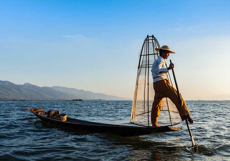 Hoy volaremos a Heho desde el aeropuerto de Bagan. A nuestra llegada a Heho, iremos en coche a Nyaung She, la puerta del pueblo del lago Inle. En nuestro camino pararemos en el monasterio de madera Shwe Yan Pyay. Cuando lleguemos al borde del lago Inle, montaremos en un bote privado motorizado para adentrarnos en el lago más espectacular de Myanmar. Tendremos la oportunidad de observar la gente de Intha. Hay pueblos flotantes para explorar, y más pagodas como la pagoda Phaung Daw Oo. También podremos ver pueblos como el Inpawkhon, el pueblo Se Gaung y el pueblo Nan Pan, y finalizaremos el día visitando el monasterio Nga Phe Kyaung, en cuyo interior descubrirás la historia ilustrada del budismo en Myanmar, y que también es famoso por los gatos de sus alrededores. Noche en Nyaung Shwe.