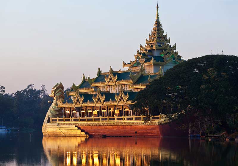 Nuestro viaje en Myanmar empieza hoy. Comenzaremos explorando Yangón. En primer lugar, el barco real Karaweik, un precioso palacio flotante con un popular lugar para comer; entonces visitaremos Chauk Htat Gyi, famoso por la estatua reclinada de buda; a continuación, la pagoda Botataung, donde se mantienen las reliquias de Buda, y la magnífica decoración dorada deslumbrarán los ojos de todo visitante. Después daremos un paseo alrededor del puerto, veremos el Stand Hotel y también divisaremos el pasado colonial del centro de Yangón. Al anochecer visitaremos el mercado Boyoke y la pagoda Shwedagon, si así lo deseas, ya que es más bonita durante la puesta de sol. Noche en Yangón.