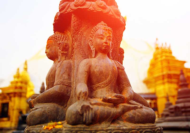 Esta mañana disfrutaremos de la vista de un amanecer espectacular en el Himalaya. Después del desayuno caminaremos al Namobuddha. La caminata tomará alrededor de dos horas y podremos pasar a través de diferentes pueblos nepaleses antes de llegar al monasterio budista y la estupa en Namobuddha. Podrás interactuar con los monjes, al igual que encender una lámpara de aceite. Se cree que Buddha vino a Namobuddha (que significa “qué viva Buddha”) en una de sus encarnaciones y le dio su carne a una tigresa hambrienta para que pudiera alimentar a sus crías. En el lugar hay una losa de piedra ancestral y una estupa con los ojos que todo lo ven de Budha para conmemorar la ocasión. Existen diferentes estupas y banderas coloridas que ondean en la brisa fría del lugar. Una gran estatua de Buda y varias estupas alineadas una cerca de la otra, con el encantador Himalaya de fondo, proveen una oportunidad estupenda para tomarse una foto que no tendrá par. Después de esto visitaremos Panauti (30min en coche), un sitio medieval y una ciudad histórica llena de monumentos budistas e hindúes. Noche en Dhulikhel.