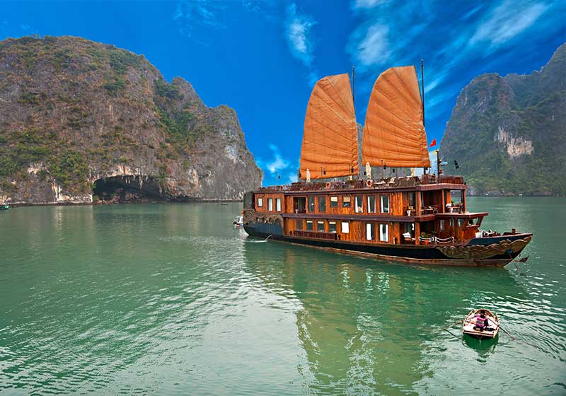 • Navegar sobre un barco trandicional de junco en la bahía de Halong