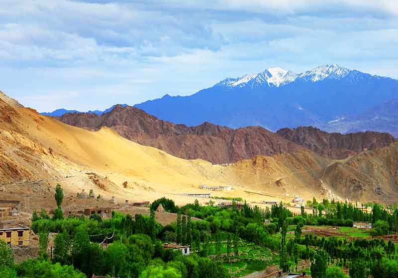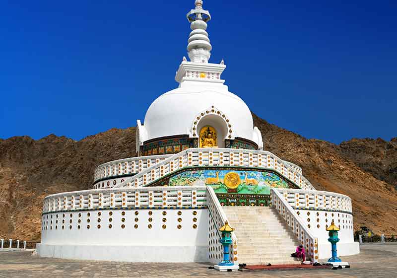 Esta mañana cogeremos un avión a Leh. Una vez que lleguemos, debido a la elevada altitud de Ladakh, necesitarás todo el día para descansar con el fin de acostumbrarte. Por la tarde visitaremos Shanti Stupa, el monasterio Chowkhang y exploraremos los mercados locales si así lo deseas. Noche en Leh.